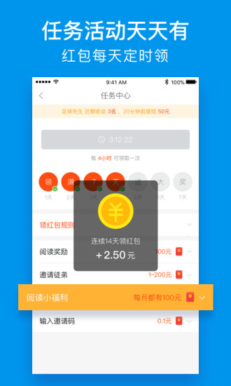 2、邀请一个人奖励3元,外加徒弟30%的阅读提成